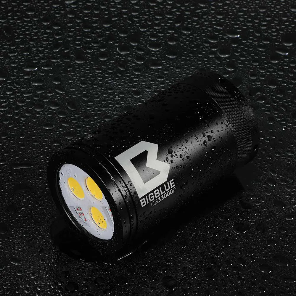 Giv dine undervandsproduktioner et massivt løft med Bigblue CB33000P. Dette er en af de mest kraftfulde lygter i Bigblues sortiment, designet til professionelle dykkere, der har brug for ekstremt lysudbytte og præcis farvegengivelse til store scener.